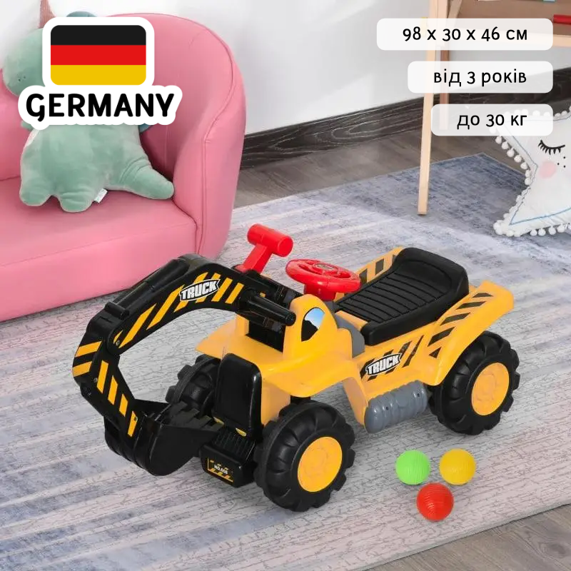 Екскаватор дитячий від 3 років Толокар Каталка 4-в-1 Спецтехника HOMCOM 98 x 30 x 46 см НімеччинаЕкскаватор дитячий від 3 років Толокар Каталка 4-в-1 Спецтехника HOMCOM 98 x 30 x 46 см Німеччина
