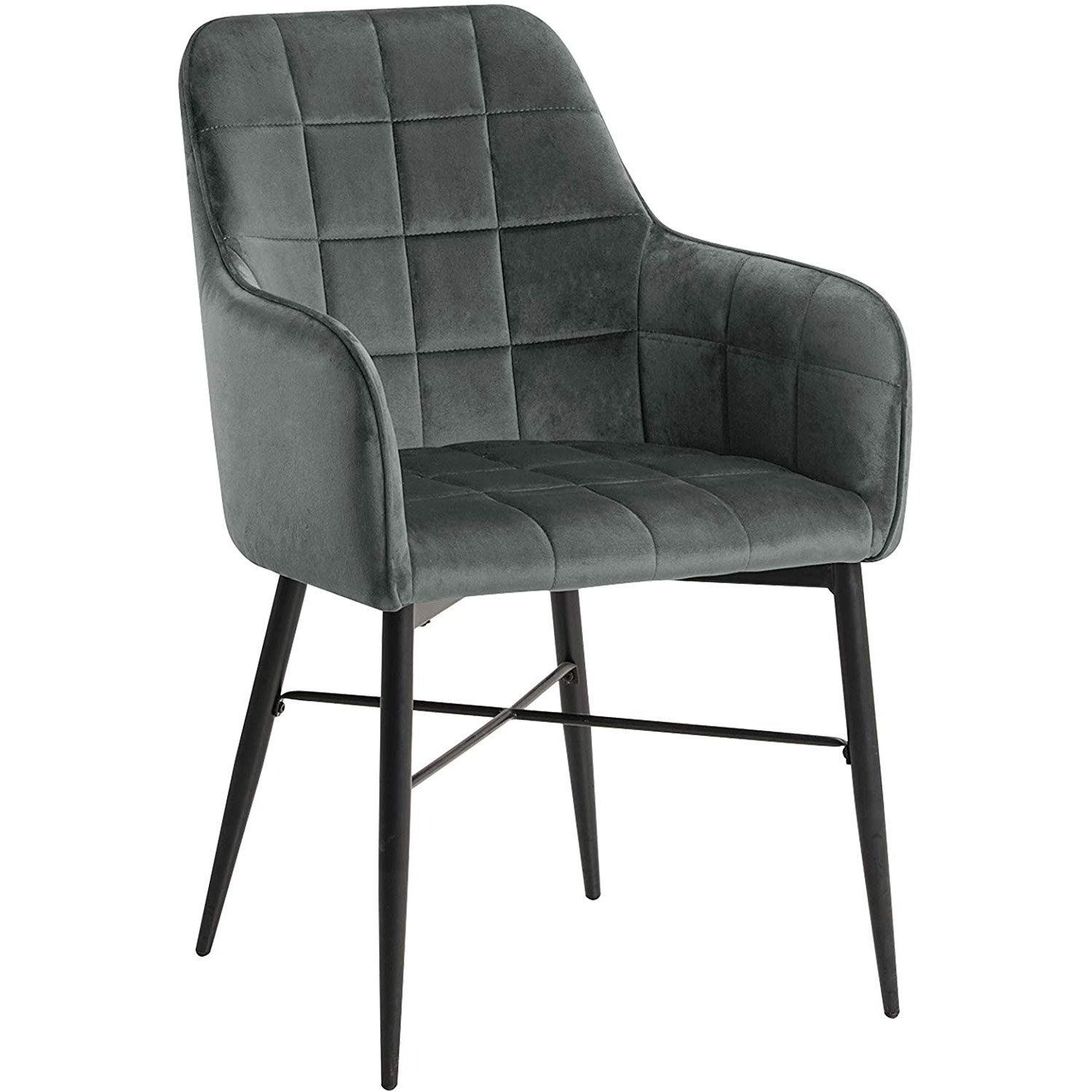 Стілець з підлокітником, оксамитовим сидінням і металевими ніжками BH81 (Чорний)