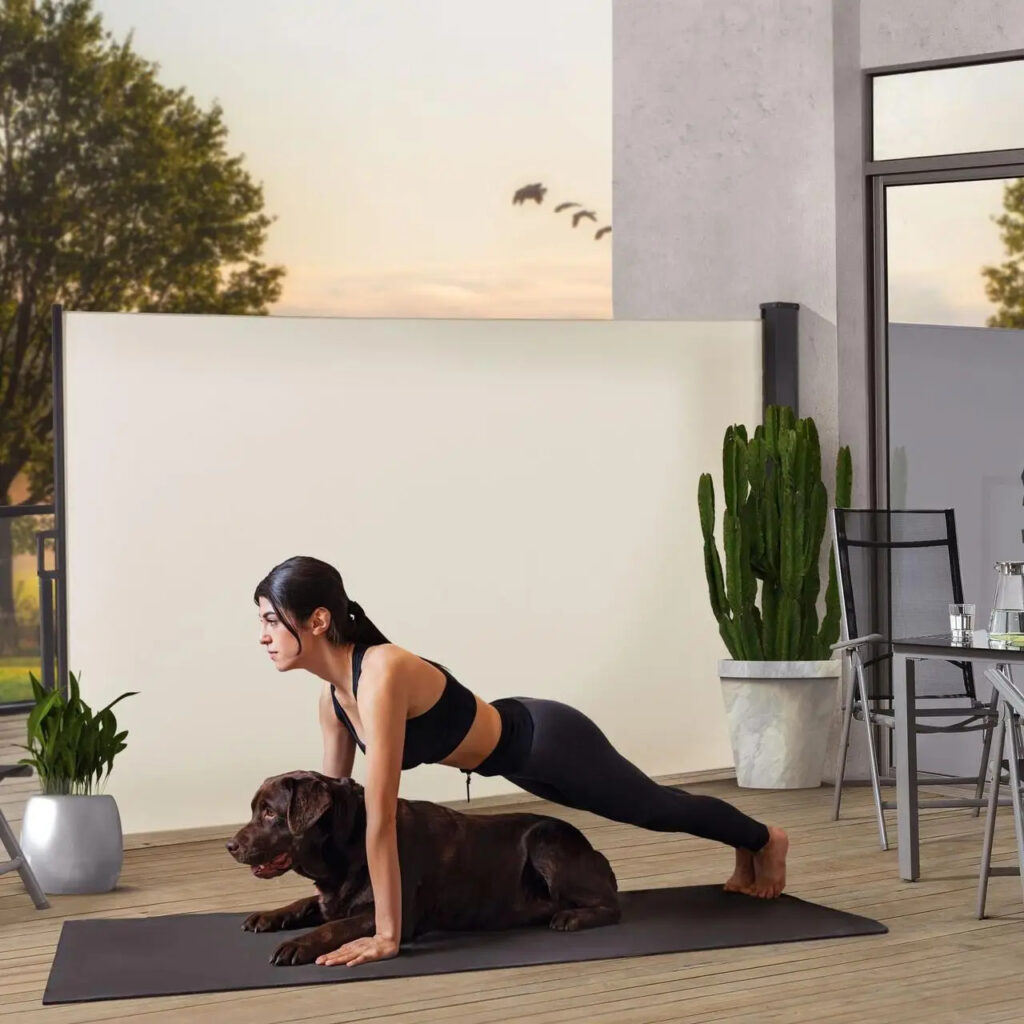 індивідуально регульована довжина. Захистіть балкон або терасу від сонця та небажаних поглядів сусідів. Наш бічний тент не підходить для затишного недільного сніданку та довгих літніх вечорів у саду.
