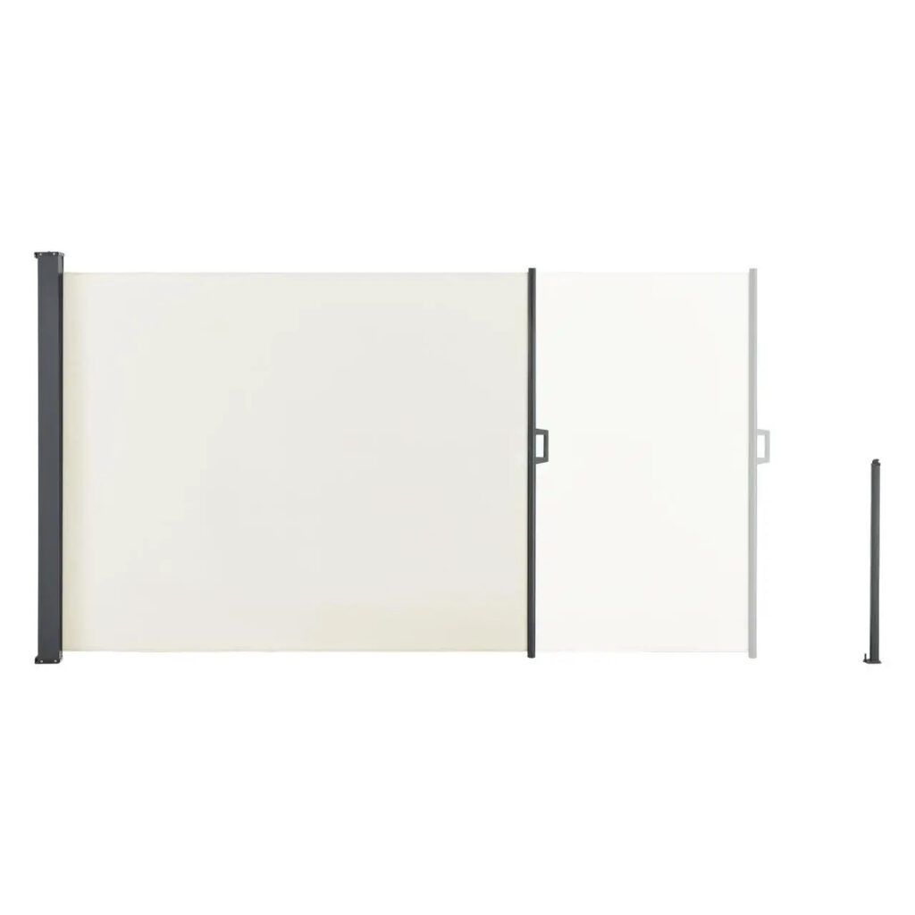 Оскільки бічний тент згорнуто до касети, можна легко розтягнути тканину на вибрану довжину. Це дає можливість адаптувати маркізу індивідуально до ваших потреб. Для захисту саду від сонця та сторонніх очей. Загалом сучасна перегородка має висоту 1,80 м та максимальну довжину 5 м.