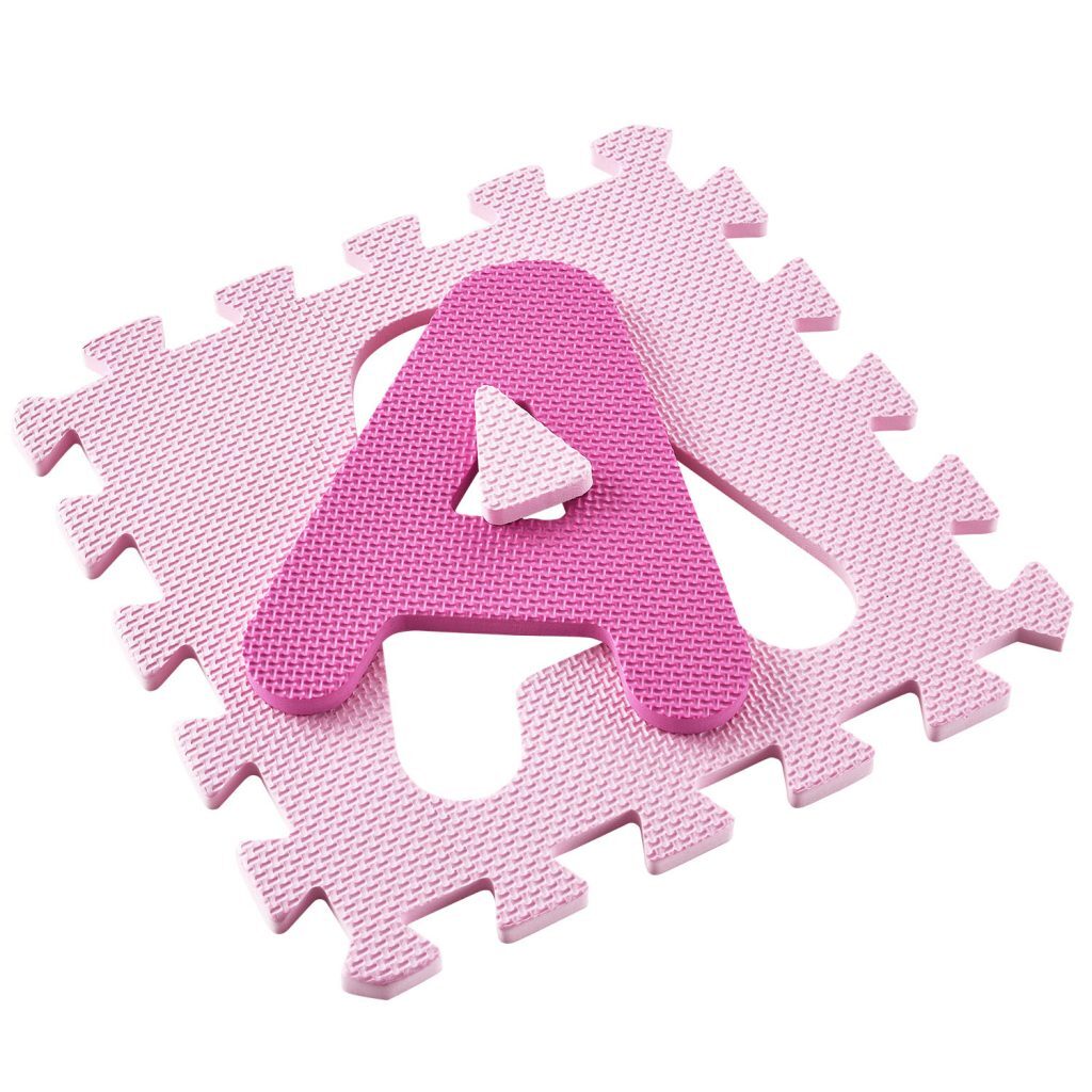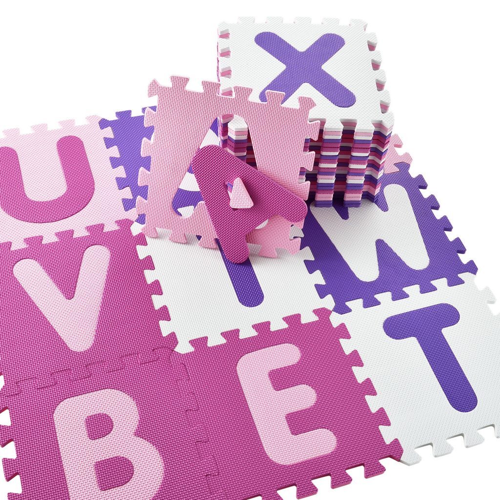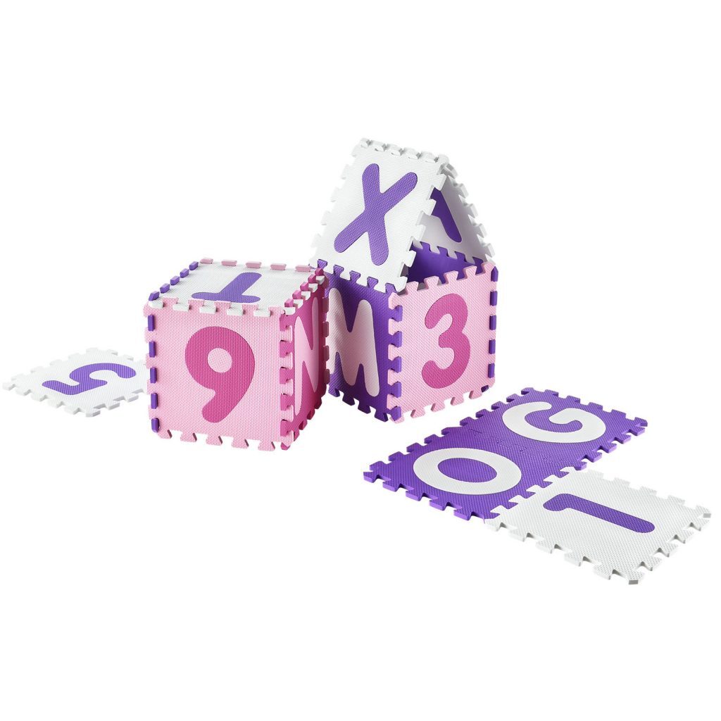 “Дитячий килимок-пазл 36 штук від А до Я і від 0 до 9 Рожевий-фіолетовий”