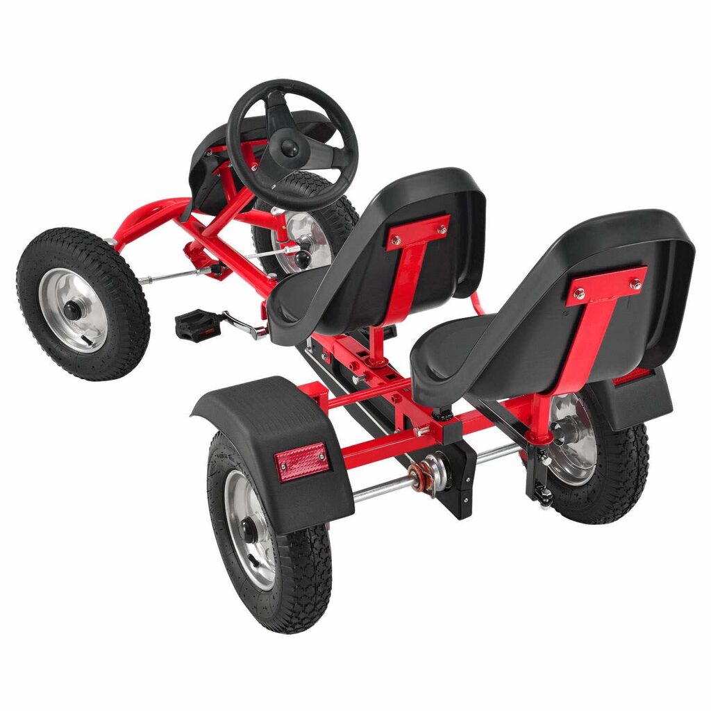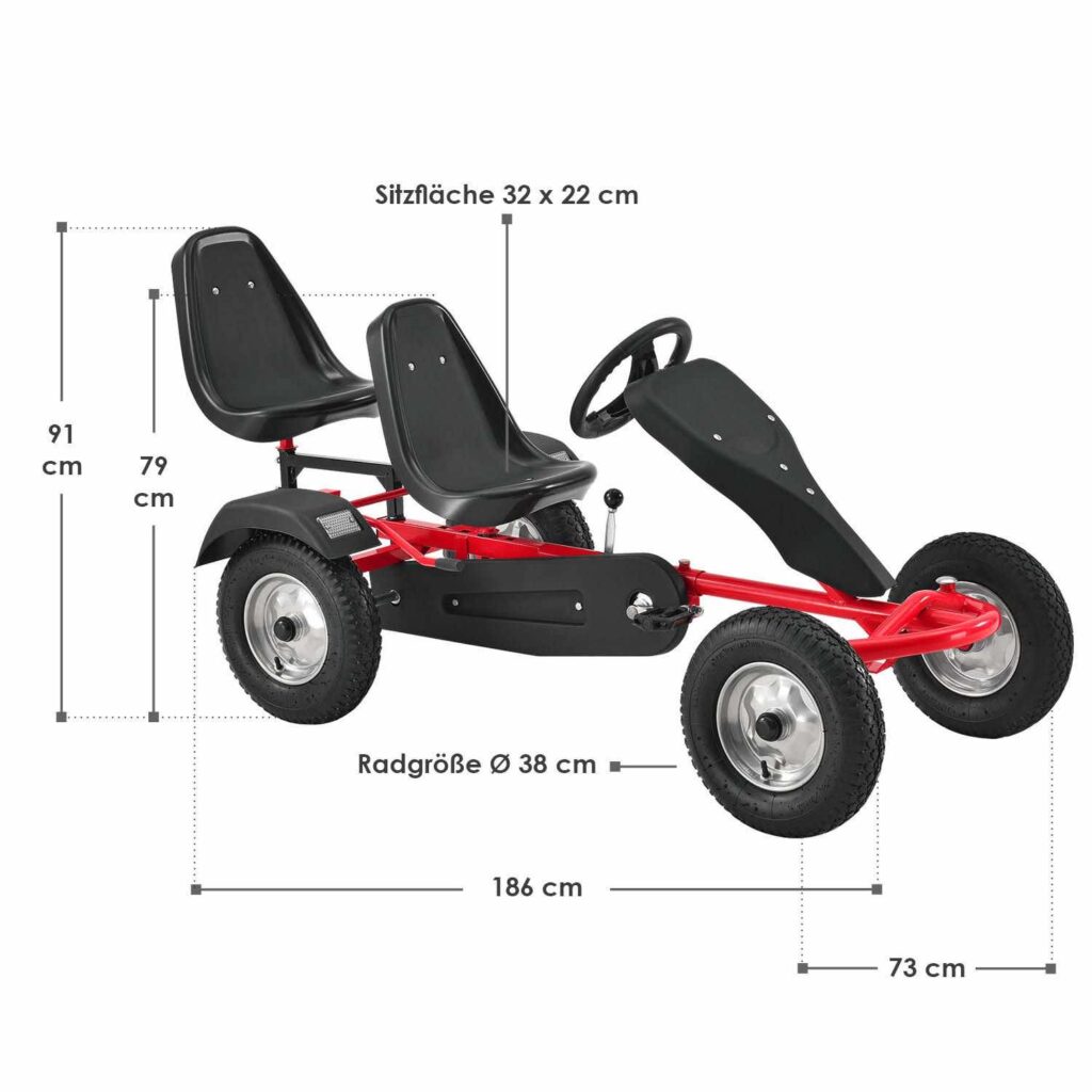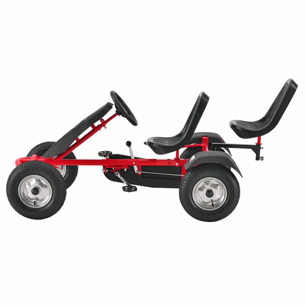 2-місний картинг Go-Kart (червоний) – ідеальна іграшка для активного відпочинку для дітей віком 8+*. Завдяки великим пневматичним шинам, ланцюговому приводу і муфтою вільного ходу, що відключається, дитячий транспорт з педальним управлінням приносить задоволення від водіння. Його можна рухати вперед і назад, легко керувати кермовим колесом та зупиняти за допомогою ручного гальма заднього колеса. 2 регульовані сидіння забезпечують спільне задоволення від водіння на свіжому повітрі. Це також тримає вашу дитину у формі та підвищує її здатність реагувати.