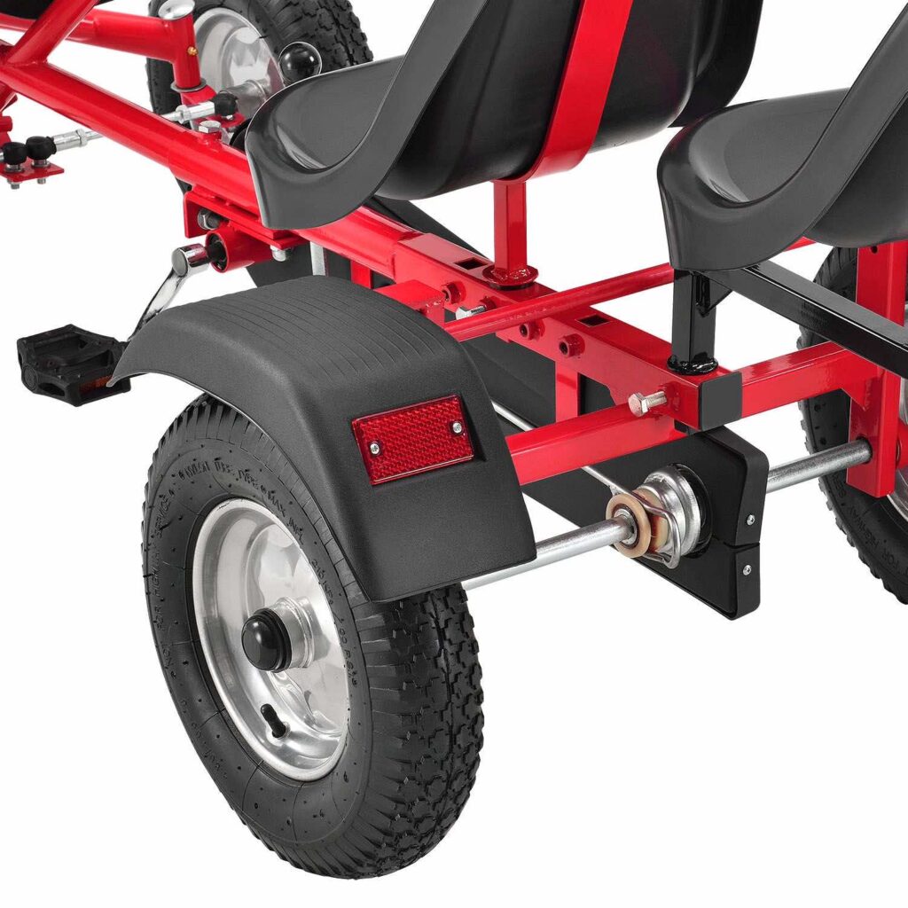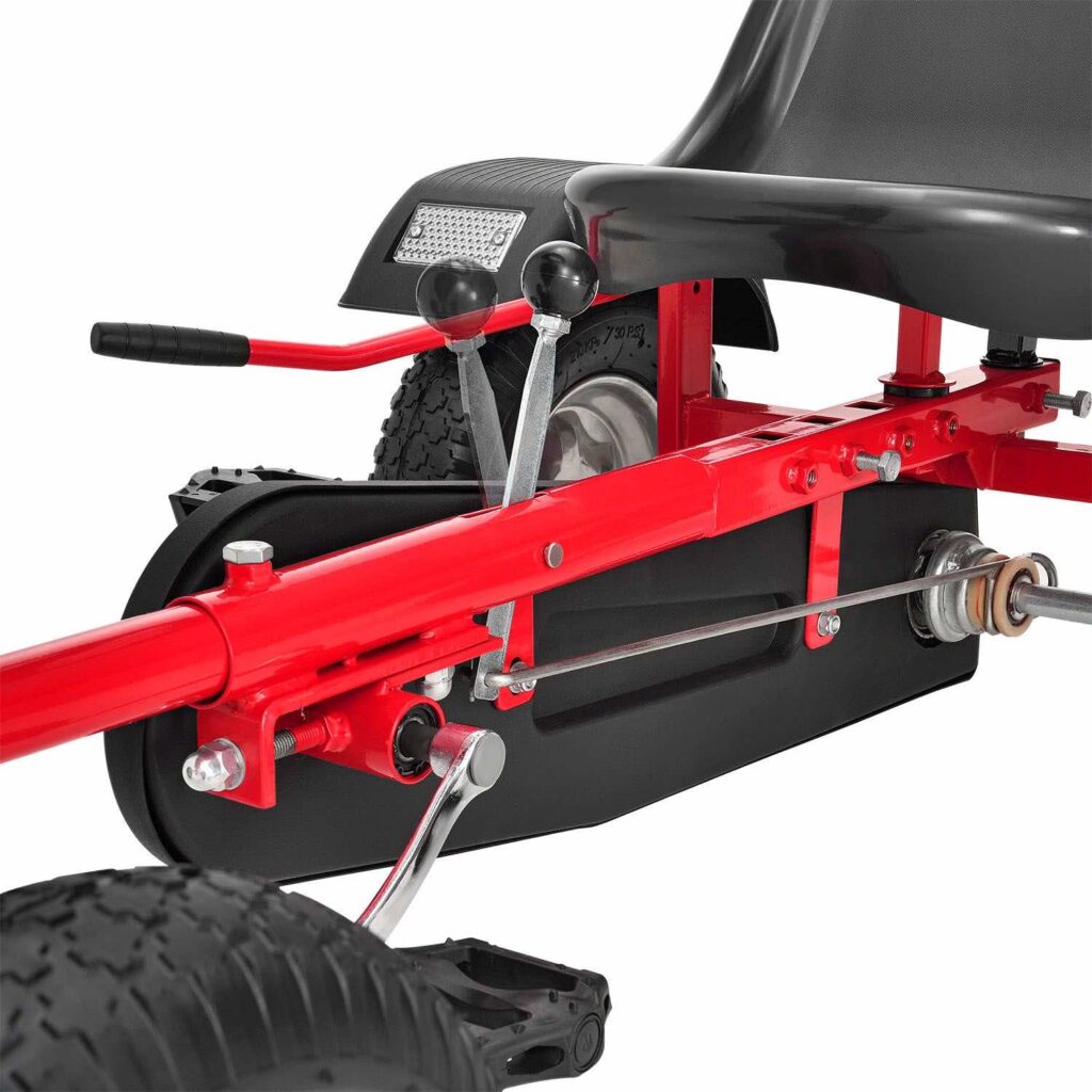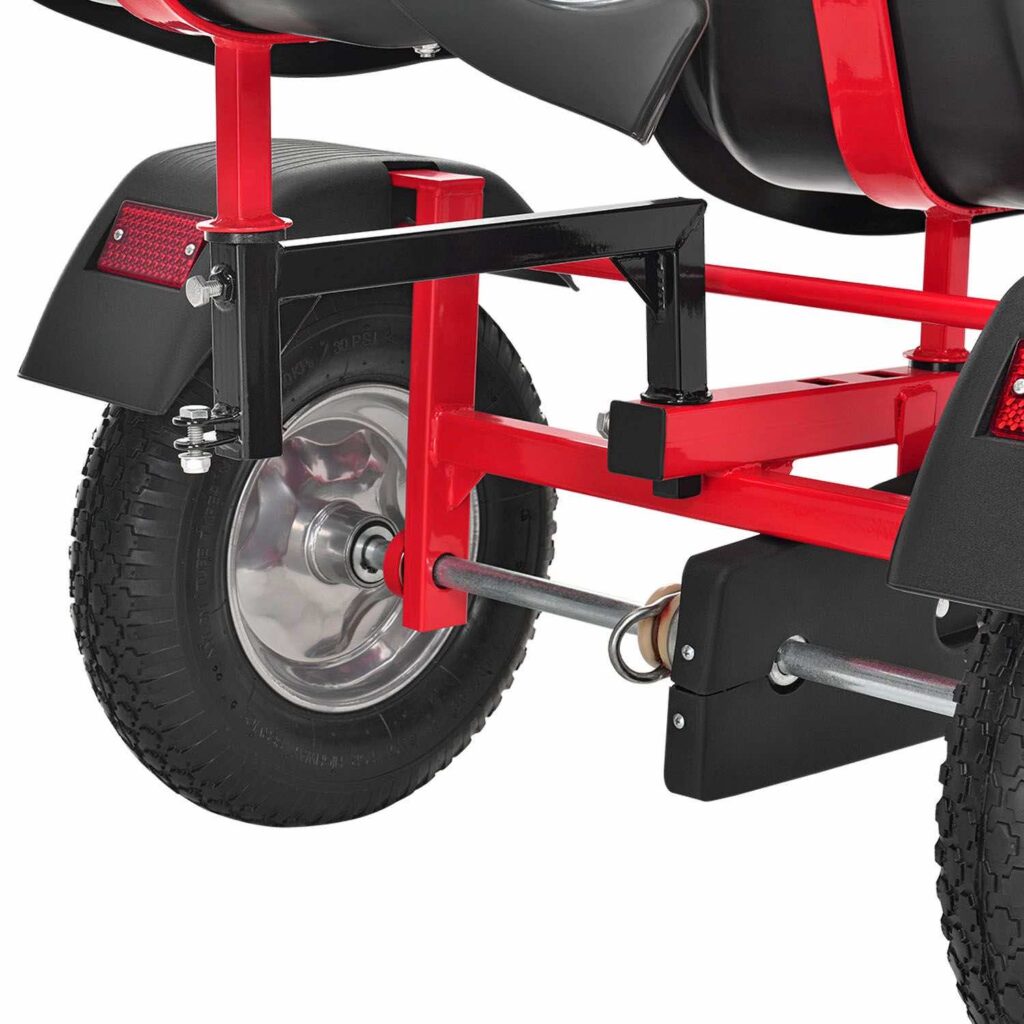2-місний картинг Go-Kart (червоний) – ідеальна іграшка для активного відпочинку для дітей віком 8+*. Завдяки великим пневматичним шинам, ланцюговому приводу і муфтою вільного ходу, що відключається, дитячий транспорт з педальним управлінням приносить задоволення від водіння. Його можна рухати вперед і назад, легко керувати кермовим колесом та зупиняти за допомогою ручного гальма заднього колеса. 2 регульовані сидіння забезпечують спільне задоволення від водіння на свіжому повітрі. Це також тримає вашу дитину у формі та підвищує її здатність реагувати.