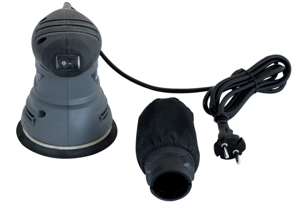 Зручна шліфувальна машина з потужністю 240 Вт для шліфування дерева, металу та подібних матеріалів. З простою системою на липучках для закріплення або заміни дисків наждакового паперу. Додаткова м’яка ручка для кращого зчеплення та мішок для пилу. Це полегшує процес роботи, миттєво вбираючи дрібні частки пилу.Деталі продукту: