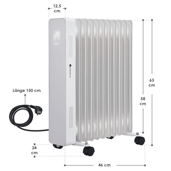 Потужний масляний обігрівач – ідеальне доповнення до системи опалення на холодну пору року. Обігрівач містить високоефективне термічне масло, але працює повністю від електрики. Малошумний обігрівач має 2 режими нагріву, які використовують повну потужність 2500 Вт або працюють економно в режимі Eco. Крім того, обігрівач має широкі можливості, включаючи світлодіодний сенсорний дисплей і підключення до Wi-Fi. Додаткові функції, такі як захист від морозу та перегріву, забезпечують більшу безпеку в кожному домі.Технічні характеристики: