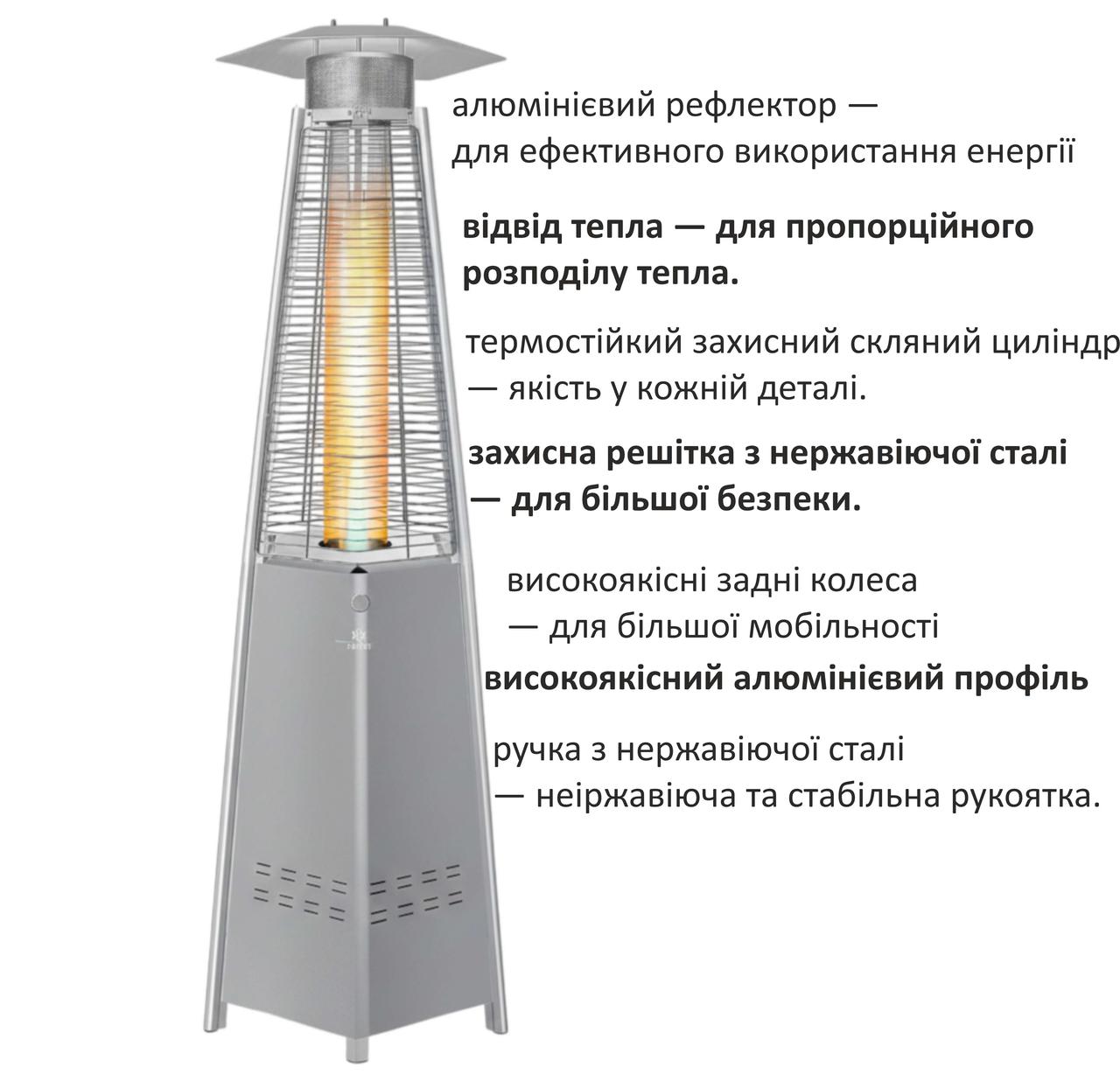 “Газовий терасний обігрівач KESSER 12,5 кВт з відкритим полум’ям та редуктором сірий”