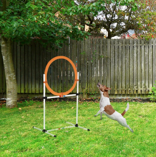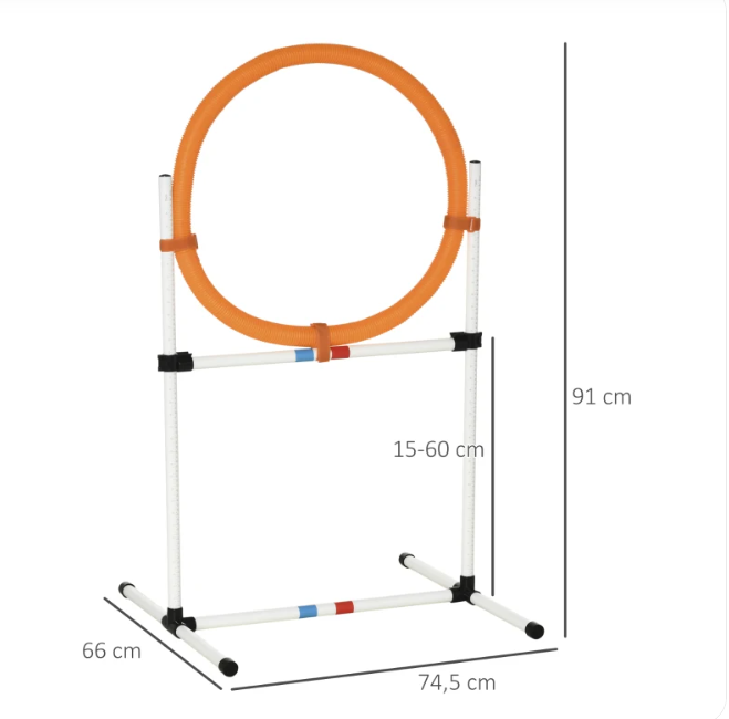 Цей набір для дресирування від PawHut буде тренувати фізичну форму та слухняність ваших домашніх улюбленців. Кільце можна встановити на будь-якій плоскій поверхні, а завдяки малій вазі та практичному футляру його дуже легко брати з собою. Ви можете використовувати тренажер з кільцем або без нього, перетворюючи його на перешкоду. Його легко зібрати та демонтувати!