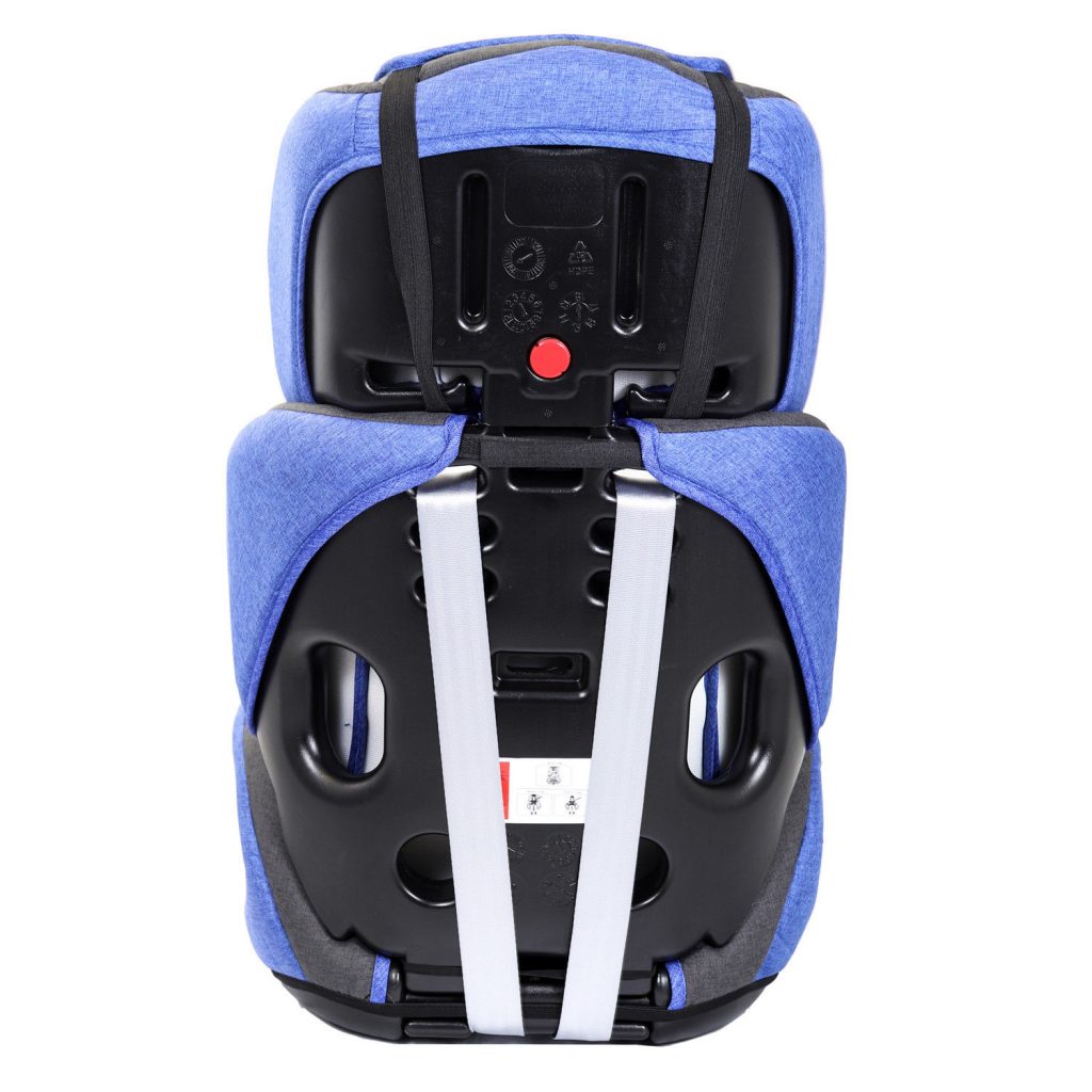 Регульована по висоті система натягу ременя дозволяє вам спочатку розташувати дитини в сидінні, закрити 5-точковий ремінь безпеки, а потім натягнути ремінь через центральний ремінь безпеки на нижній частині сидіння.