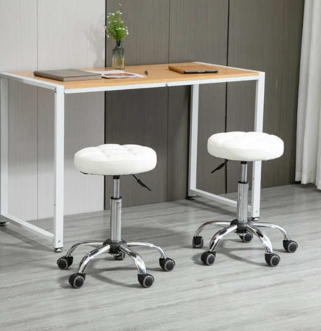 Салонний табурет від HOMCOM регулюється на потрібну висоту для створення ідеального робочого місця. М’яке сидіння забезпечує комфорт навіть протягом тривалого сидіння. Чохол зі штучної шкіри простий у догляді. І ви можете регулювати висоту сидіння відповідно до ваших потреб, що дуже зручно. 5 коліщаток і сидіння, що обертається, дозволяють легко ковзати в робочому просторі.