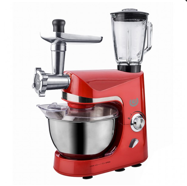 – має 4 функції: тістоміс, міксер, м’ясорубка, блендер