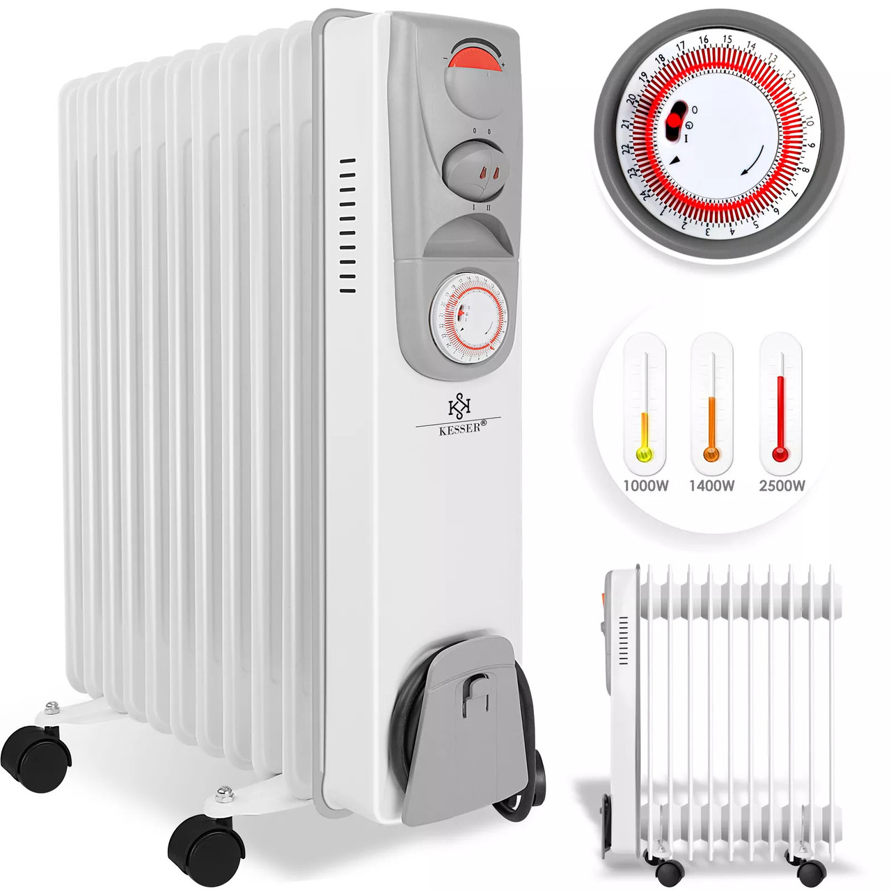 “Масляний електричний обігрівач з таймером KESSER 2500 Вт 11 відділів 2500W Німеччина”