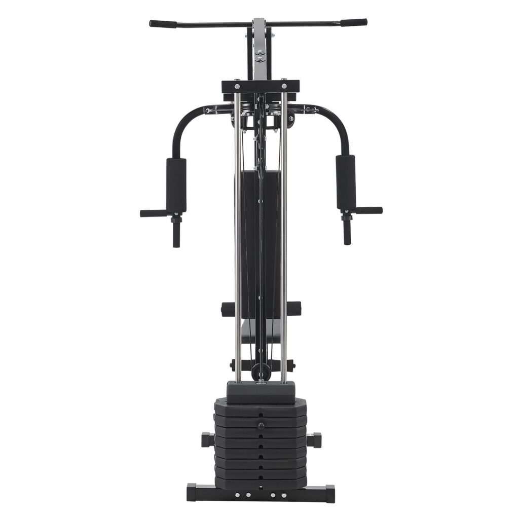 Мультитренажер виготовлений із міцної сталі. Крім того, конструкція квадратних трубок збільшує опір пристрою. Елегантний вид навчальної станції надає високоякісне чорне оздоблення.