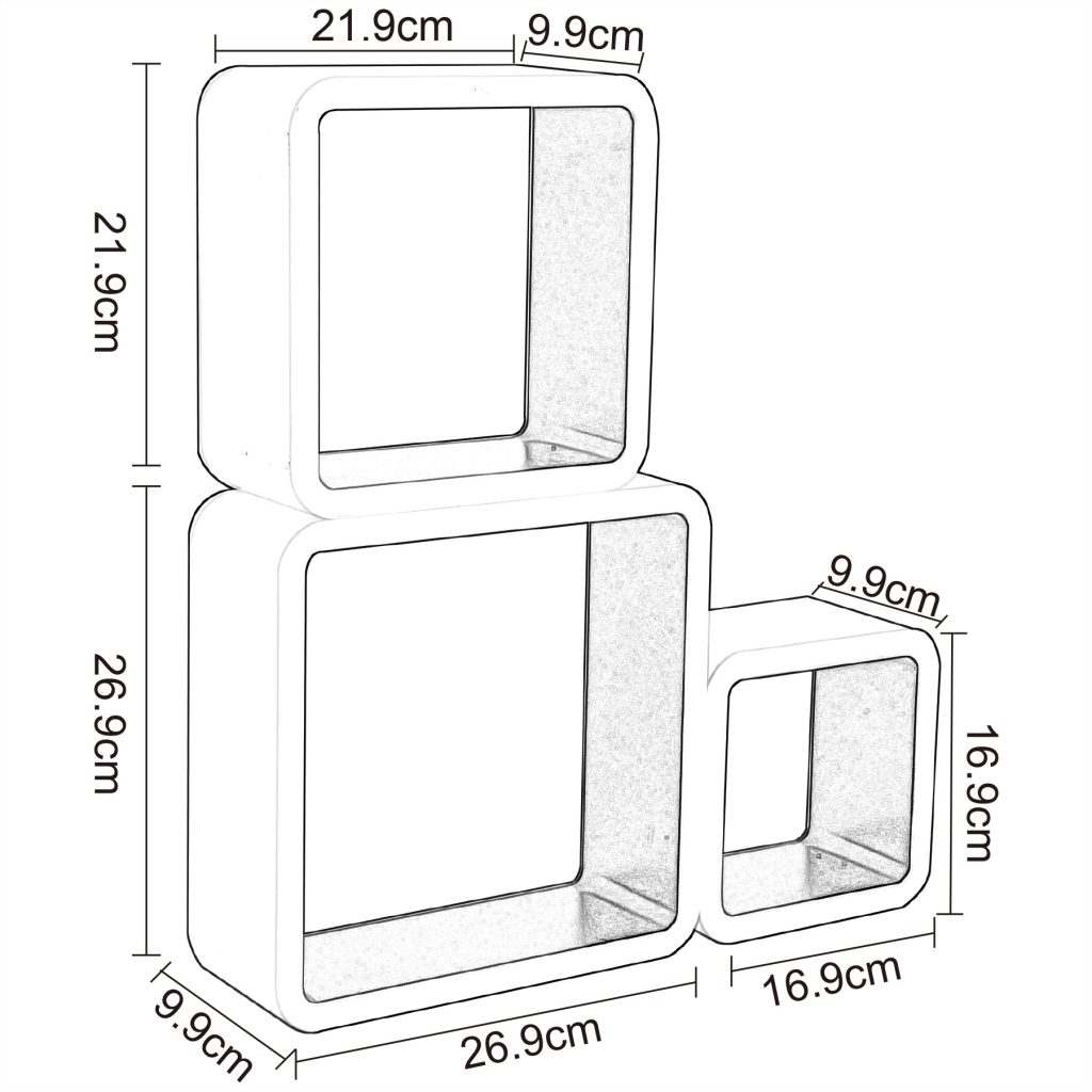 • Розмір (Д х Ш х В): 26,9 х 26,9 х 9,9 см; 21,9 х 21,9 х 9,9 см; 16,9 х 16,9 х 9,9 см