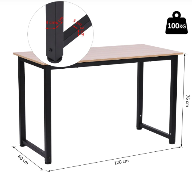 Цей стіл від HOMCOM чудово поєднує стиль і практичність. Поєднання чорної металевої рами та стільниці з виглядом натурального дерева ідеально підійде для будь-якого дизайну. Стільниця з меламіновим покриттям із міцного МДФ є водовідштовхувальна і стійка до подряпин. В офісі чи вдома – цей простий, просторий стіл від HOMCOM стане ідеальним рішенням для вас.