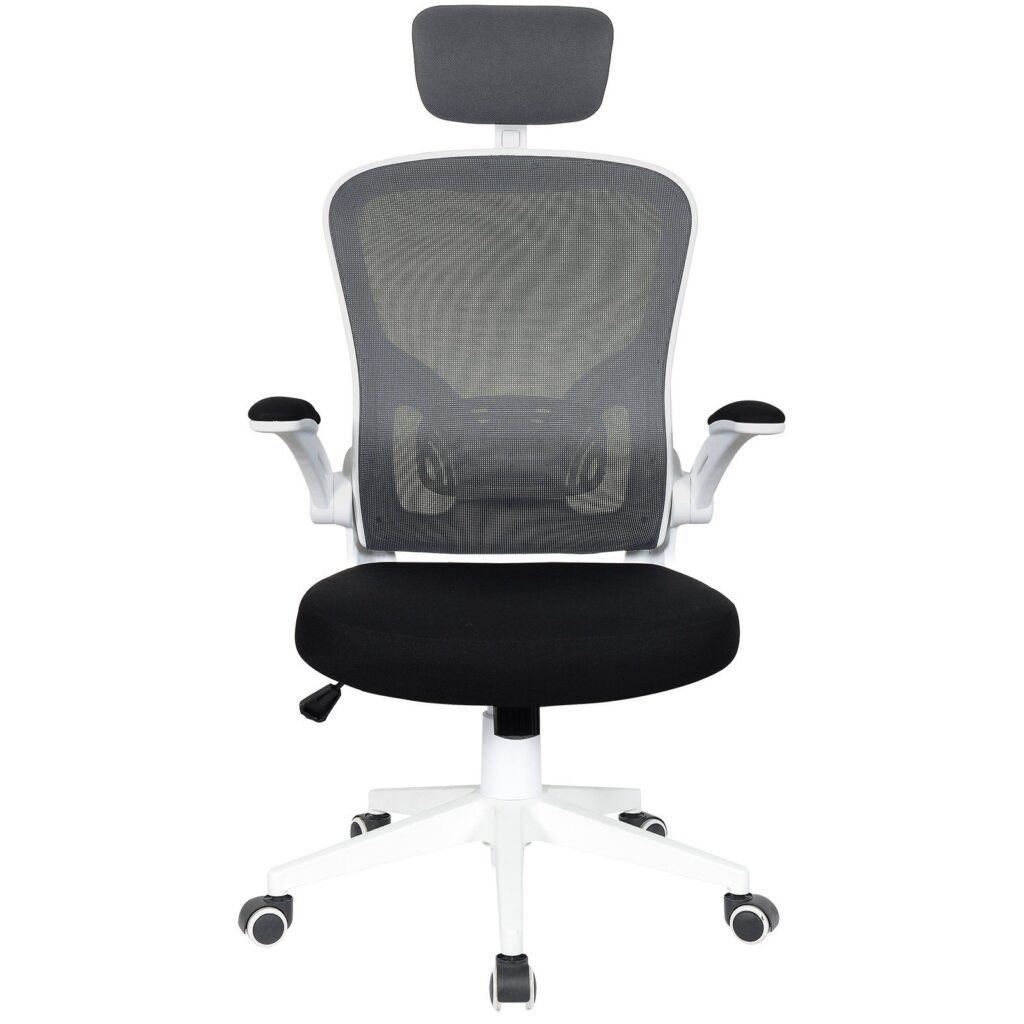 Габарити: 64 × 59 × 28 смЕргономічне офісне кресло з сучасним сетчатим дизайном. Цей вращающийся стул не тільки ергономічний, але і є стильним елементом любого офісу – сучасним, практичним та шикарним. Підлокотники кресла складаються. Кресло можна використовувати як з підголовником, так і без нього.