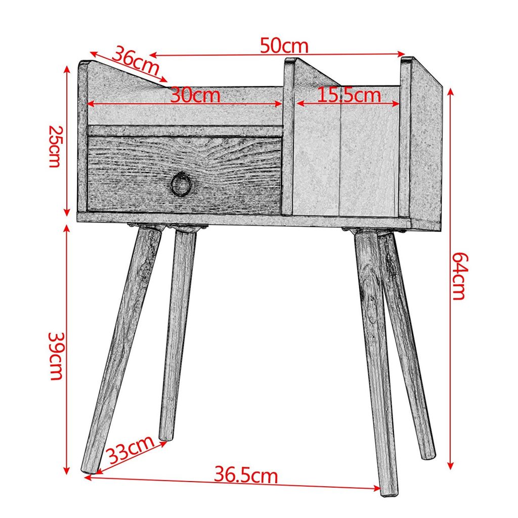 • Розміри тумбочки: 50 x 36 x 64 см (Ш х Г х В)