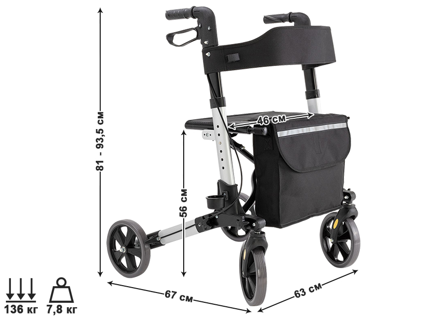 Люди з обмеженими можливостями пересування потребують додаткової допомоги, але не завжди поруч з ними знаходиться той, хто може надати цю допомогу. Ходунки KESSER забезпечать автономність та зручність у пересуванні для людей похилого віку, інвалідів, пацієнтів у стані реабілітації тощо. Їхня легкість і маневреність за рахунок поворотних передніх коліс, дозволить не докладати додаткових зусиль в управлінні самим роллатором, а наявність м’якого сидіння зі спинкою дає можливість сісти і перепочити, коли це потрібно. Сумка на передній поверхні ходунків – це безперечний плюс до зручності їхнього користувача. Ходунки легко складаються до дуже компактних розмірів, завдяки чому їх зручно транспортувати та зберігати. Також не можна не відзначити таку зручну функцію, як тримач для тростини, розташований праворуч. Користувачі цих ходунків гідно оцінять їх.