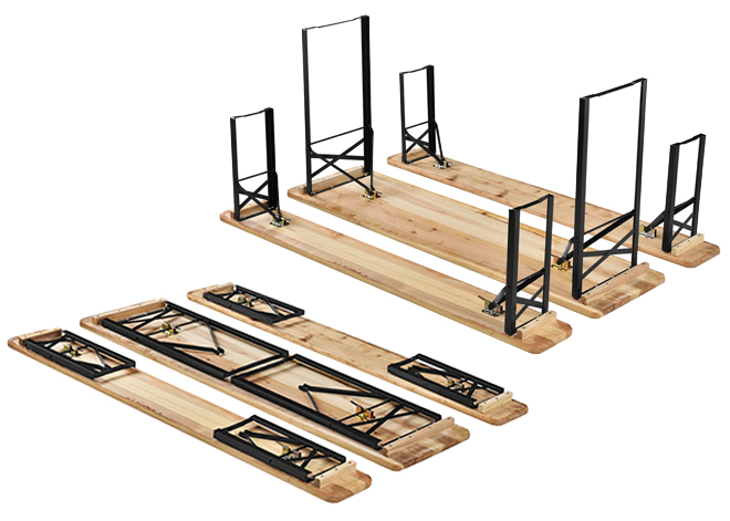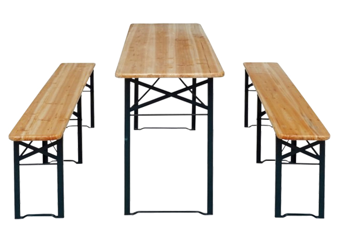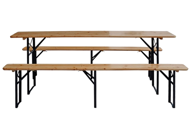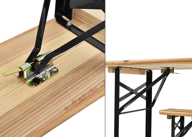 Головними перевагами даного набору садових меблів є міцність, простота та універсальність. Він може використовуватися для будь-яких заходів на відкритому повітрі: у саду, у парку, на громадських заходах та масових гуляннях, а також використовуватись у літніх кафе та на відкритих терасах. Складна конструкція столу та лавок передбачає зручне зберігання поза періодом використання. Потужні засувки-фіксатори біля основи кріплення ніжок забезпечують шабельність конструкції. Меблі виготовлені з якісних матеріалів: рама виконана зі сталі з порошковим покриттям, а сидіння – із соснової деревини, покритої захисним лаком.