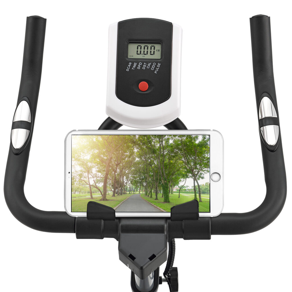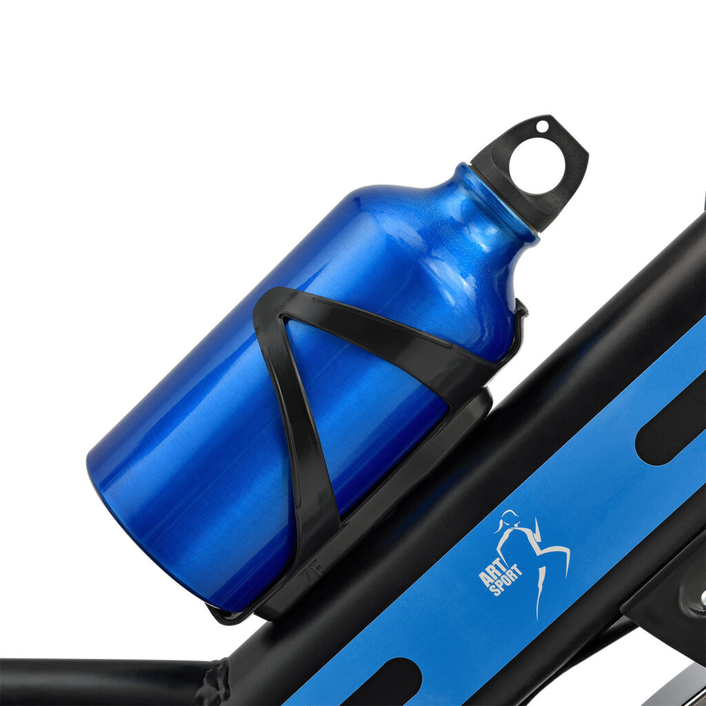 Завдяки власнику для планшетів та смартфонів вам також не доведеться відмовлятися від розваг. Просто покладіть телефон у потрібне положення, і ви можете слухати музику або дивитися відео. Під час керування тримайте пляшку з водою, що входить у комплект поставки, у тримачі для пляшок. За допомогою транспортних роликів можна легко перемістити велотренажер у потрібне місце.
