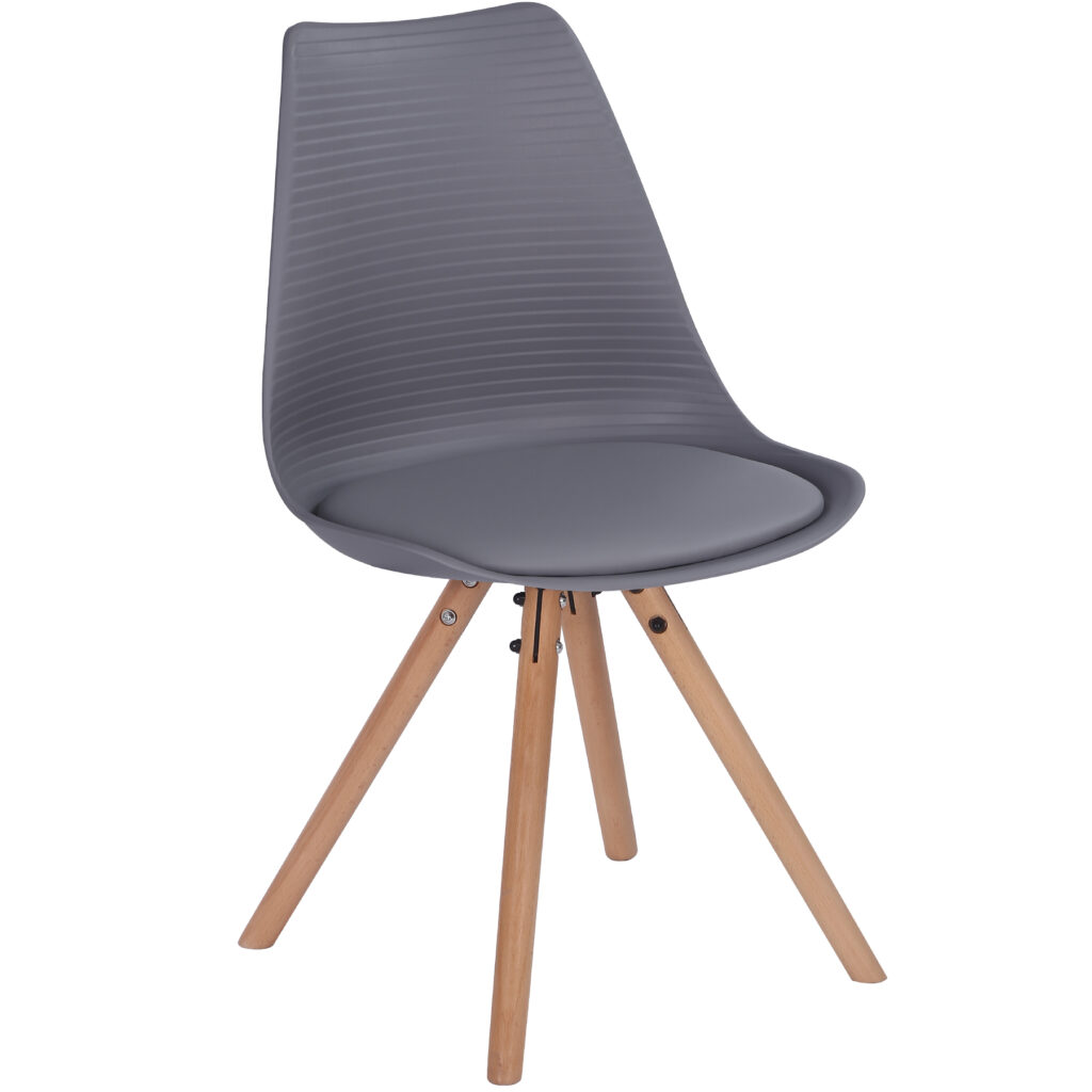 Стільці для їдальні в класичному скандинавському стилі – мінімалістичний, сучасний та практичний. Ці стільці – стильний елемент дизайну у Вашому житловому просторі – будь то кухня, їдальня, вітальня чи кімната для гостей. Оскільки ці стільці зроблені з твердого пластику, а подушки сидінь – з поліуретанової шкіри, їх особливо легко доглядати. Забруднення можна просто стерти.