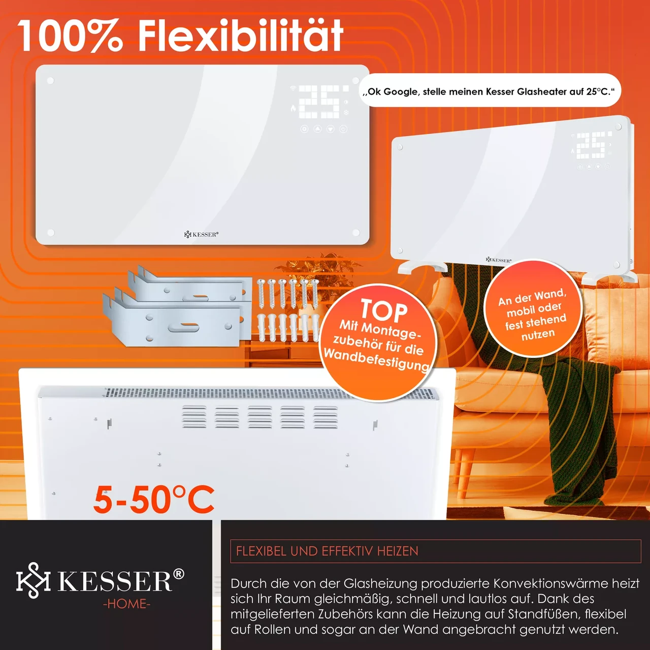 “Електричні побутові та комерційні конвектори Kesser Обігрівач 2500 Вт, 40 ° C, Сенсор + пульт ДУ”