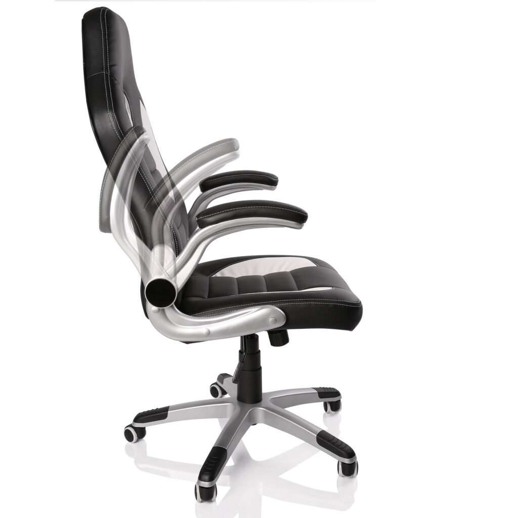 У даній моделі пластикові підлокітники з рухомою робочою поверхнею. Поворотна частина кріпиться до статичного гвинтового кріплення, і дає можливість прибрати підлокітники вгору, коли вони не використовуються або щоб засунути крісло під стіл. М’які накладки, обтягнуті матеріалом у тон оббивки, створюють додатковий комфорт вашим рукам.