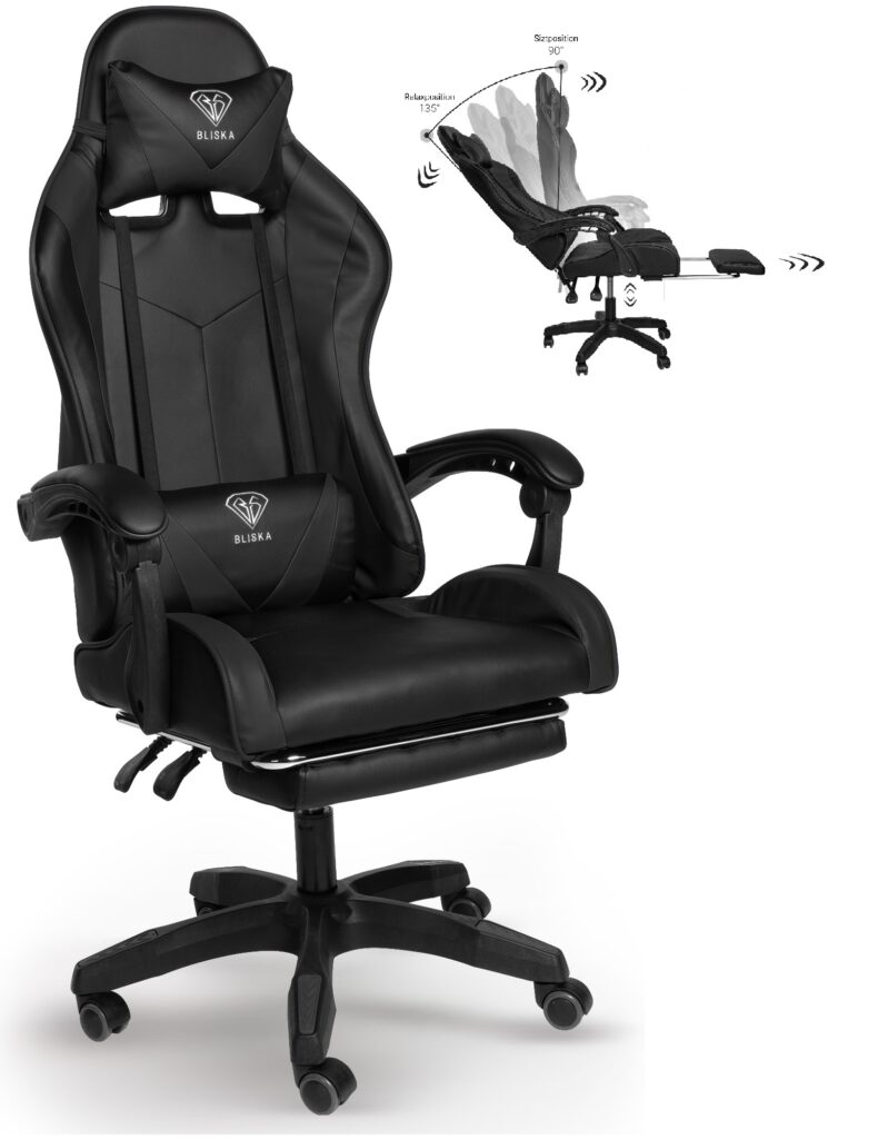 Це крісло, що обертається в спортивному дизайні, зі шкіряною обробкою підходить як як ігрове, так і як зручне крісло для домашнього офісу. Це офісне крісло має гнучкі підлокітники незвичайного дизайну. Спинку крісла можна плавно регулювати. Вбудована висувна підставка для ніг забезпечує найзручніше положення для розслаблення. Зручне крісло, що обертається, можна регулювати по висоті, а так само можна регулювати нахил спинки.