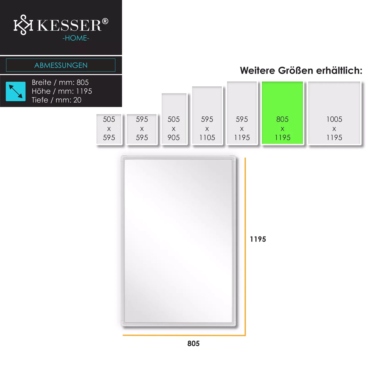 • Розміри: 805 мм x 1195 мм x 20 мм