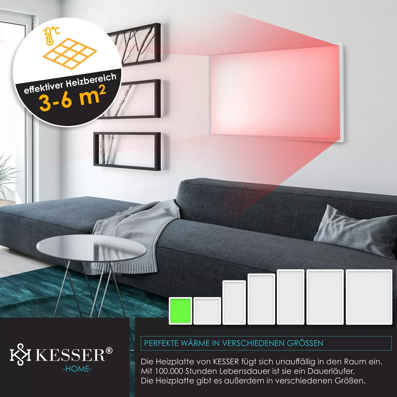 “Інфрачервоний настінний обігрівач 300W KESSER з термостатом Німеччина”