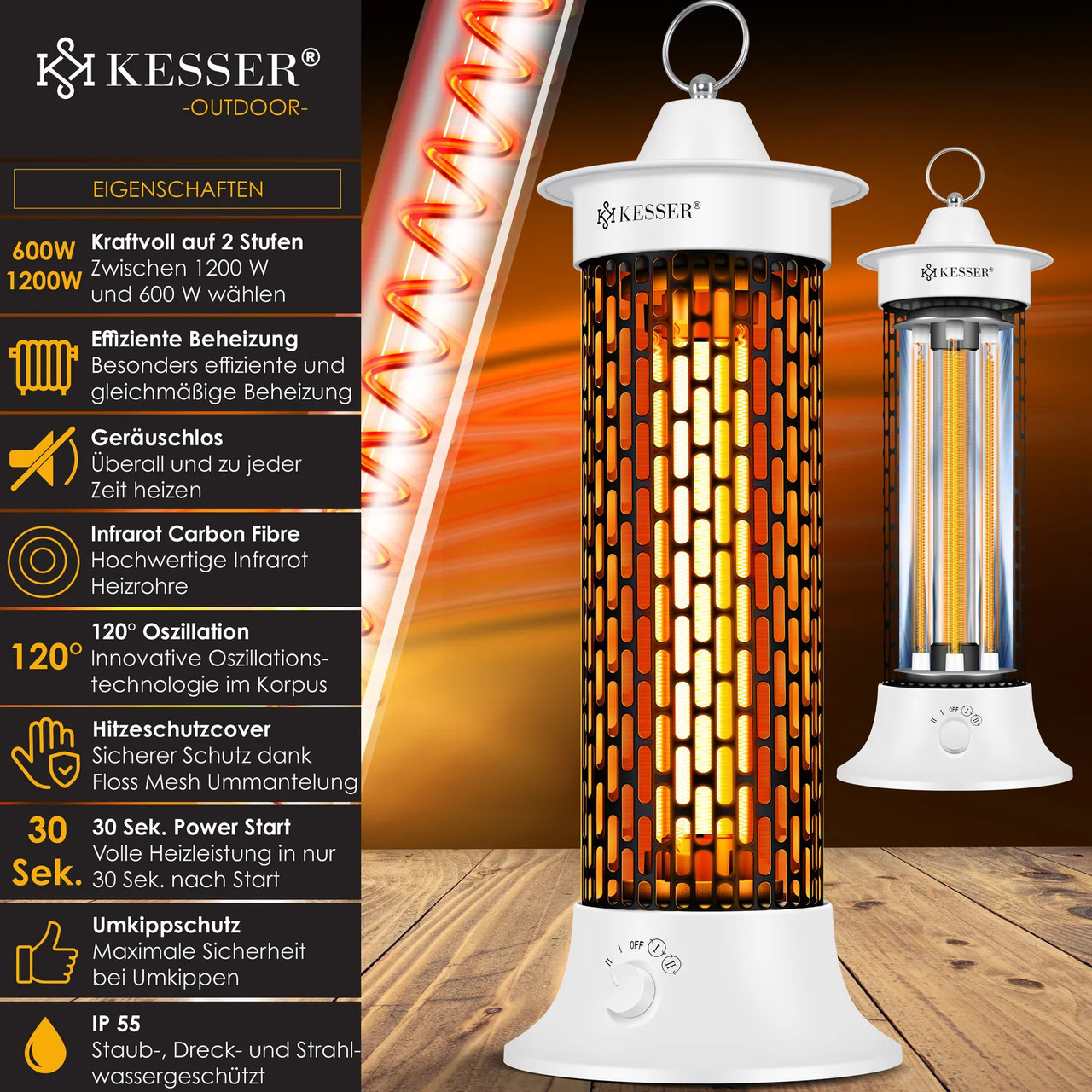 Обігрівач KESSER з двома потужними рівнями для ефективного та рівномірного нагрівання завдяки високоякісним інфрачервоним нагрівальним трубкам, коливання 120° та безшумна кришка для захисту від тепла, повна потужність нагріву всього за 30 секунд, захист від перекидання.