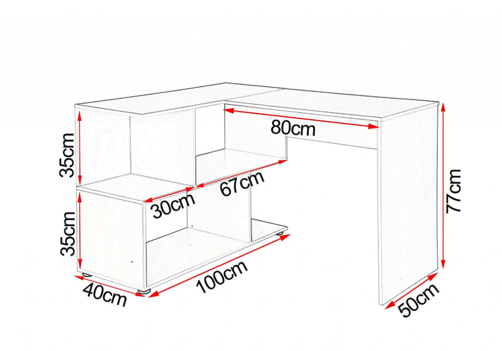 – Стіл з 4 полицями пропонує місце для книг, журналів, канцелярських продуктів і т.д.
