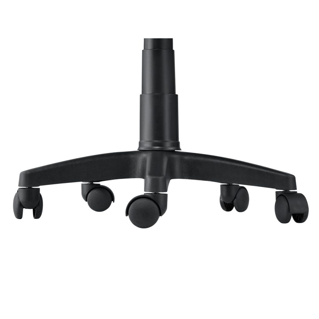 Стійкі до стирання ролики для свободи рухів Стійка п’ятизіркова основа забезпечує надійність, а 5 коліс з плавним ходом можуть вільно обертатися на 360°. Завдяки високій стійкості коліс до стирання стілець для робочого столу можна використовувати на різних покриттях для підлоги.