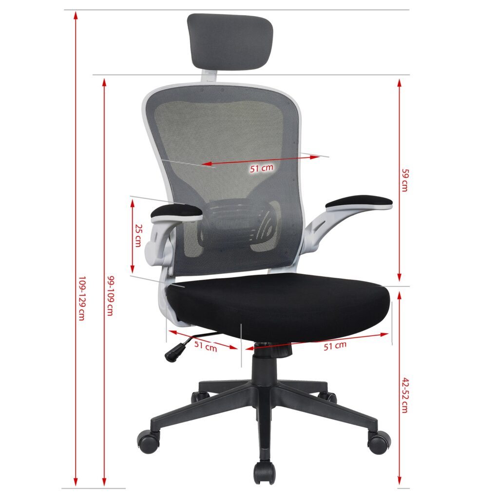 Габарити: 64 × 59 × 28 смЕргономічне офісне кресло з сучасним сетчатим дизайном. Цей вращающийся стул не тільки ергономічний, але і є стильним елементом любого офісу – сучасним, практичним та шикарним. Підлокотники кресла складаються. Кресло можна використовувати як з підголовником, так і без нього.