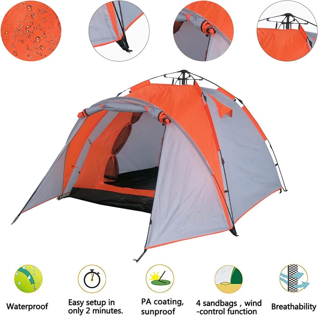 С этой палаткой для кемпинга вы станете идеальным компаньоном для поездки на природу. Он обеспечивает защиту от ветра и непогоды, а внутренняя площадь 2 х 2 м обеспечивает достаточно места для 3 человек.