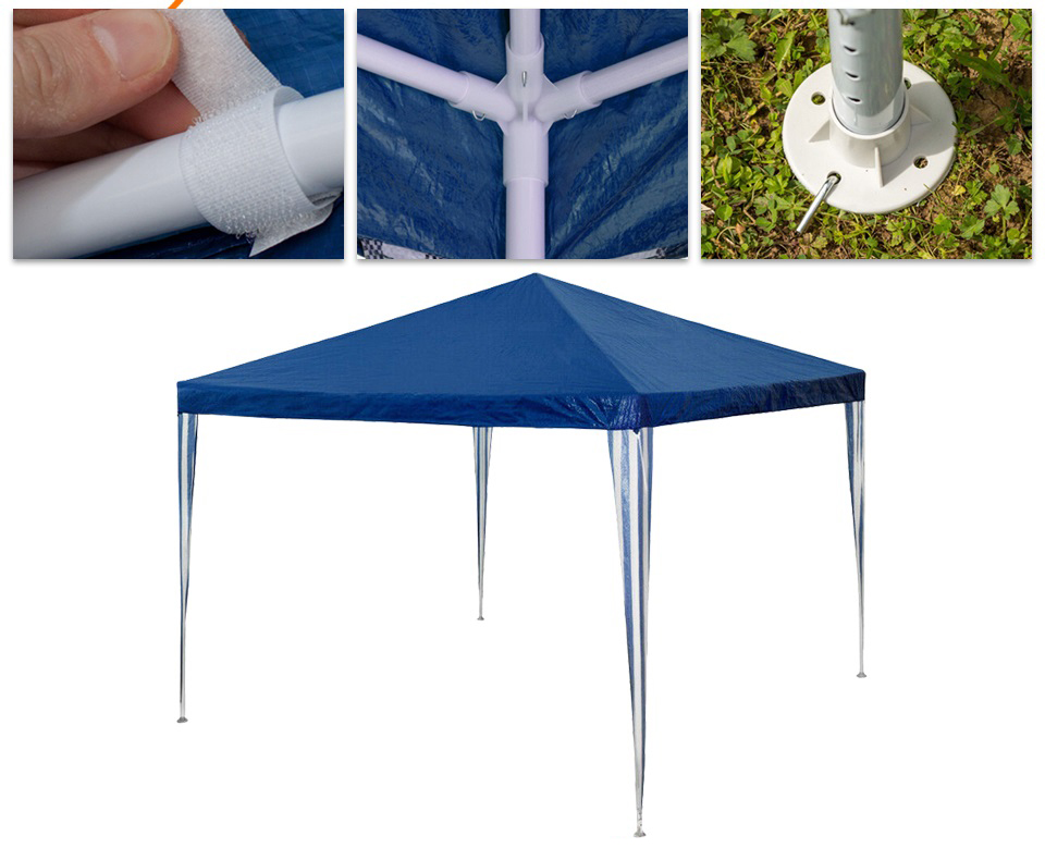Цей павільйон стане ідеальним рішенням для будь-якого заходу на свіжому повітрі. Легкість у збірці та мобільність даної моделі дозволить Вам насолоджуватися природою в умовах комфорту та захищеності, куди б ви не поїхали: чи то ліс, водоймище, чи навіть виїзд дикуном до моря. Можливість легко змінювати конструкцію павільйону, дозволить вам підлаштувати його під використання в найрізноманітніших цілях: в якості намету для проведення свята на природі, як закрита кімната для сімейних обідів у власному саду, як укриття від дощу на пікніку, і навіть як торговий намет.
