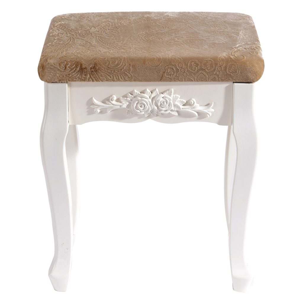 Наш продукт приваблює з погляду дизайну та якості. Першокласний матеріал МДФ та пов’язана з цим довговічна конструкція цього стільця гарантує довгий строк служби. На додаток до свого гарного дизайну, косметичний стілець надзвичайно практичний. Всі елементи виготовлені із МДФ та ручної роботи. Біла обробка надає стільцю сучасний, елегантний та світлий вигляд. Табурет добре обтягнутий і легко чиститься вологою ганчіркою. Цей стілець створює у вашій вітальні романтичну та неповторну атмосферу заміського будинку.