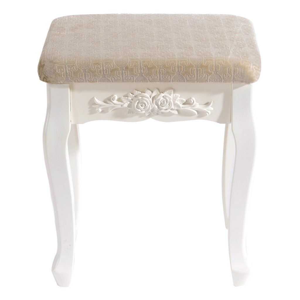 Наш продукт приваблює з погляду дизайну та якості. Першокласний матеріал МДФ та пов’язана з цим довговічна конструкція цього стільця гарантує довгий строк служби. На додаток до свого гарного дизайну, косметичний стілець надзвичайно практичний. Всі елементи виготовлені із МДФ та ручної роботи. Біла обробка надає стільцю сучасний, елегантний та світлий вигляд. Табурет добре обтягнутий і легко чиститься вологою ганчіркою. Цей стілець створює у вашій вітальні романтичну та неповторну атмосферу заміського будинку.