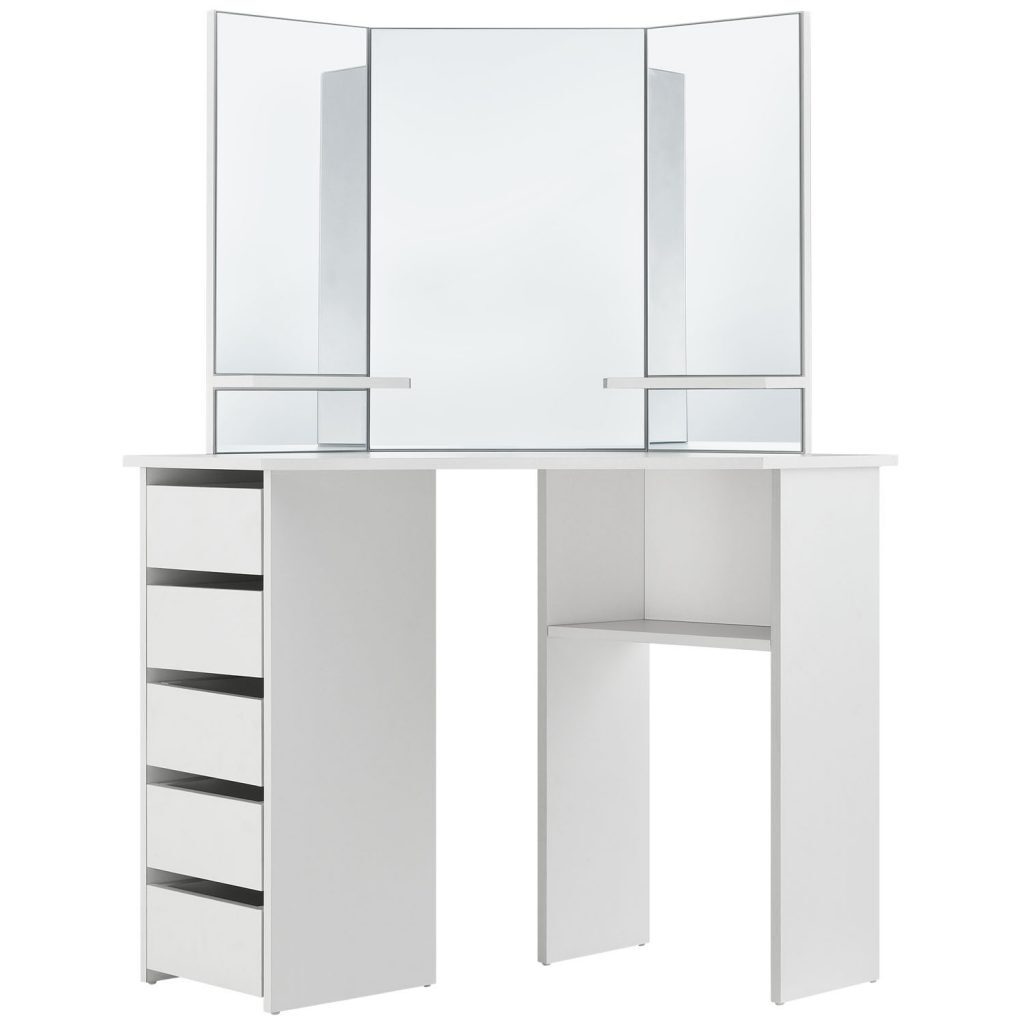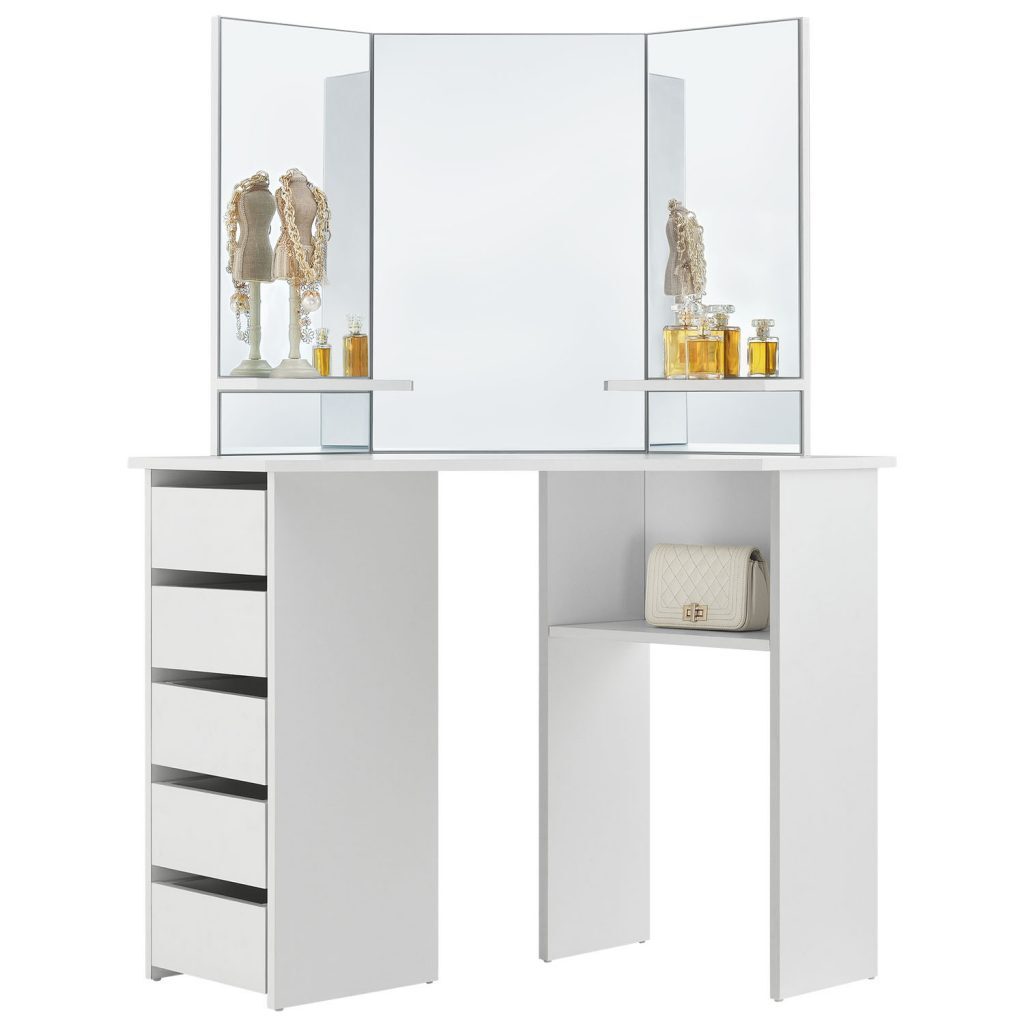 Завдяки кутовій конструкції косметичний столик впишеться у будь-який кут спальні чи дитячої кімнати. Завдяки невеликій площі 100 × 53 см ви можете встановити його, щоб заощадити місце. На відміну від інших моделей, ви оптимально використовуєте простір. Простий дизайн вражає своєю простою елегантністю.